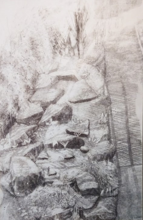 The subjects of my drawings are equally important, as I need to feel a passion for them to get involved in the detail and complexity of creating a solid black-and-white image. I have done quite a lot of drawings, people, portraits, trees, gardens, architecture, Victorian housing, etc. Light produces shadows, and these create ambiance, mystery, and magic, resulting in the creation of Form with Atmosphere.