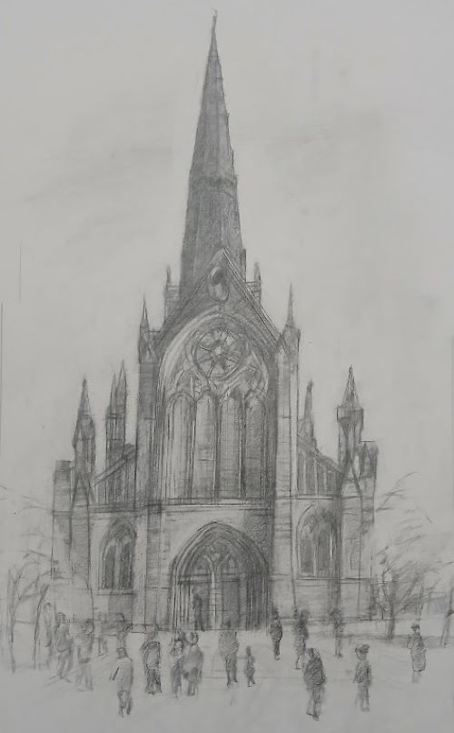 SOLDSOLDSOLDSOLDSOLDSOLDSOLDSOLD“GLASGOW CATHEDRAL” Pencil 17 1/2″ x 11″. Just finished.SOLD